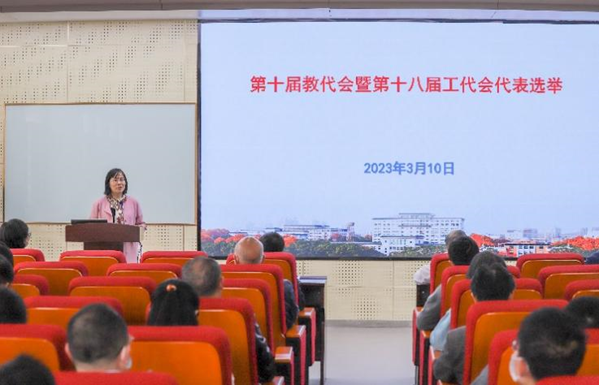3月10日下午,学院在9557报告厅召开全院工会会员大会,选举产生第十届教代会暨第十八届工代会代表。会议由学院工会主席唐一文主持。