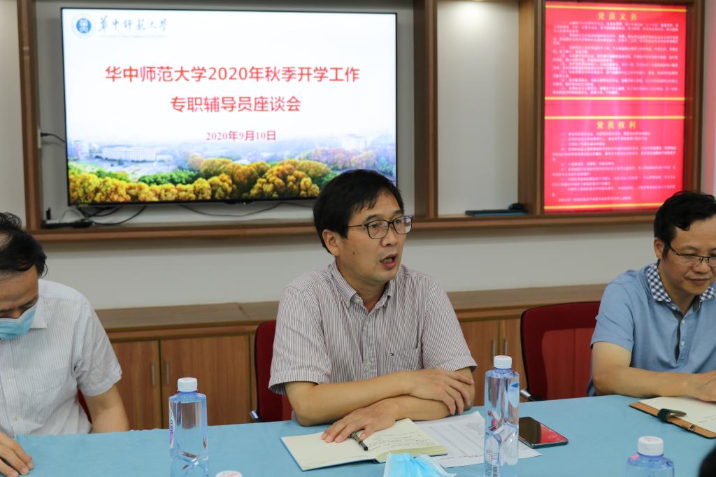 9月10日上午,华中师范大学2020年秋季开学工作专职辅导员座谈会(第二会场)在物理学院党员活动室顺利召开。华中师范大学副校长任友洲、学校信息化办公室主任吴俊文、物理学院党委书记张明生、学工部副部长李刁以及城市环境与科学学院、美术学院、物理科学与技术学院、化学学院、生命科学学院、数学与统计学学院、音乐学院党委副书记和专职辅导员参会,会议由研工部部长杨军主持。