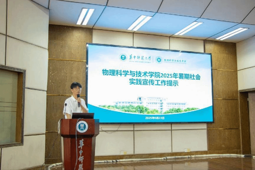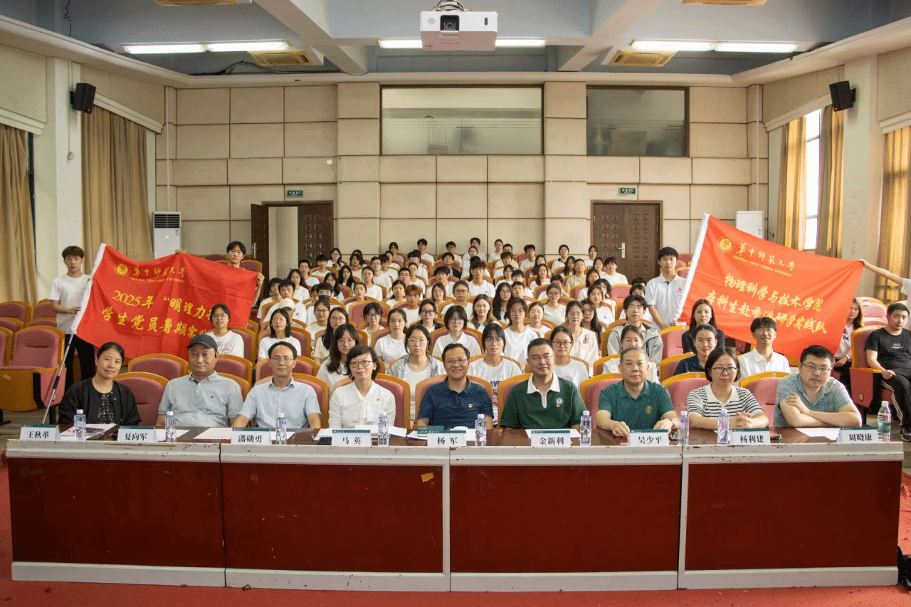 6月23日下午,物理科学与技术学院2025年暑期社会实践出征仪式在九号楼一楼报告厅举行。学校党委学生工作部副部长、事务处处长杨军,学院党委书记金新利、党委副书记马英,各实践队带队老师及队员参与仪式,仪式由团委书记舒佳欣主持。