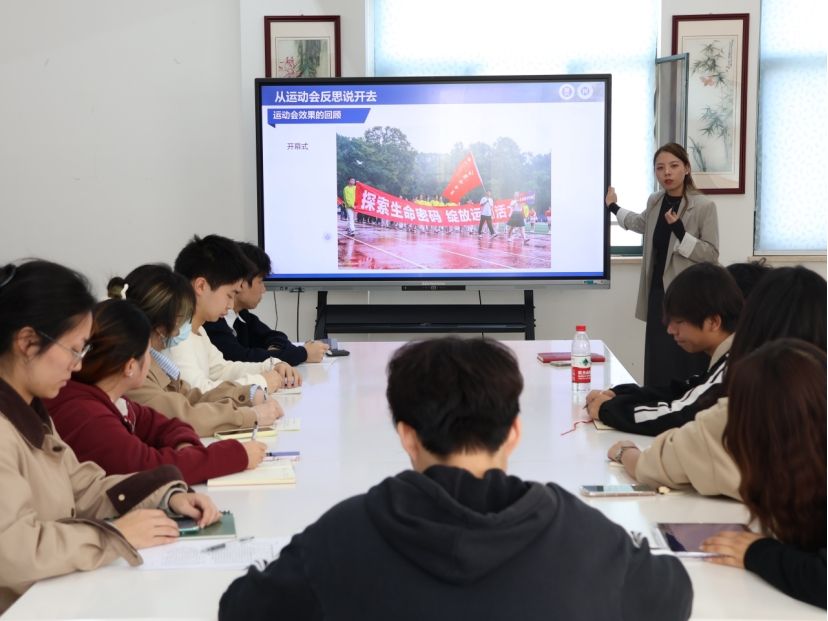 随后,舒佳欣围绕2025年校运会展开文体活动工作的复盘与思路引导。她明确强调,团学工作的核心目标是通过第二课堂助力人才培养,运动会作为全校范围的大型活动,正是对外展现学院整体形象的重要窗口。她提到,学院近年来在运动会上多次斩获佳绩,团委学生会应以此为基础,进一步明确目标定位,增强责任担当,拓展文体工作的深度与广度。