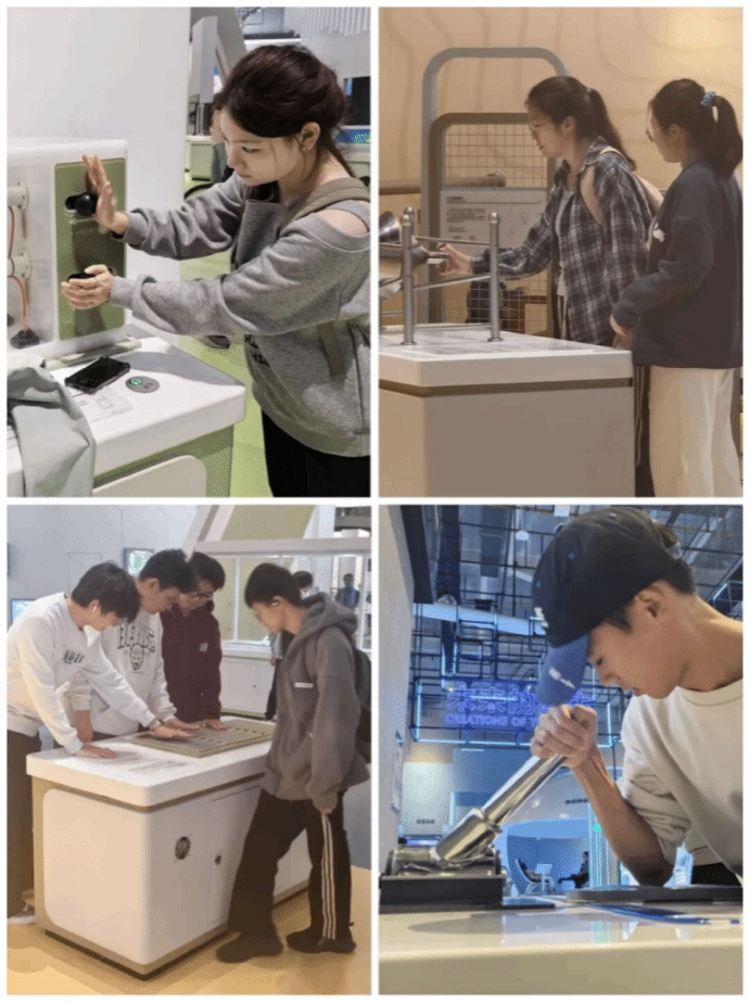 在展厅中,团员青年们将课堂所学的物理理论与生动的科学展品相互印证,通过亲手操作互动模型,深刻理解了基础研究作为科技强国基石的重大意义。“科学展厅” 与 “仰望星空” 展厅则进一步激发了大家的探索欲和求知欲,一项项国家重大科技成就,让团员们倍感自豪,也深刻认识到作为新时代青年所肩负的科技报国责任。