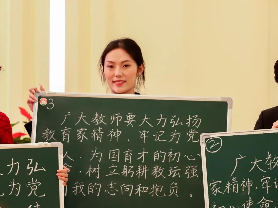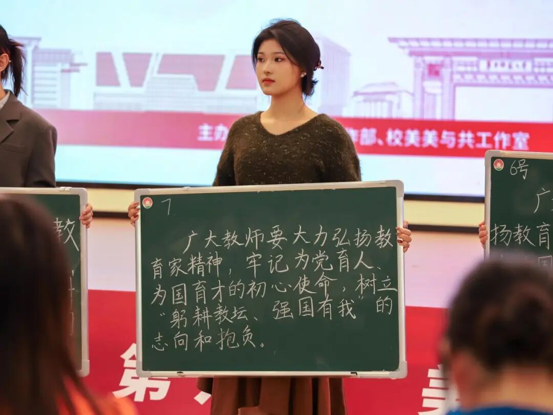 粉笔字书写展示中,她们执笔有力、字迹工整,一笔一划间尽显师范生基本功的扎实与规范。
