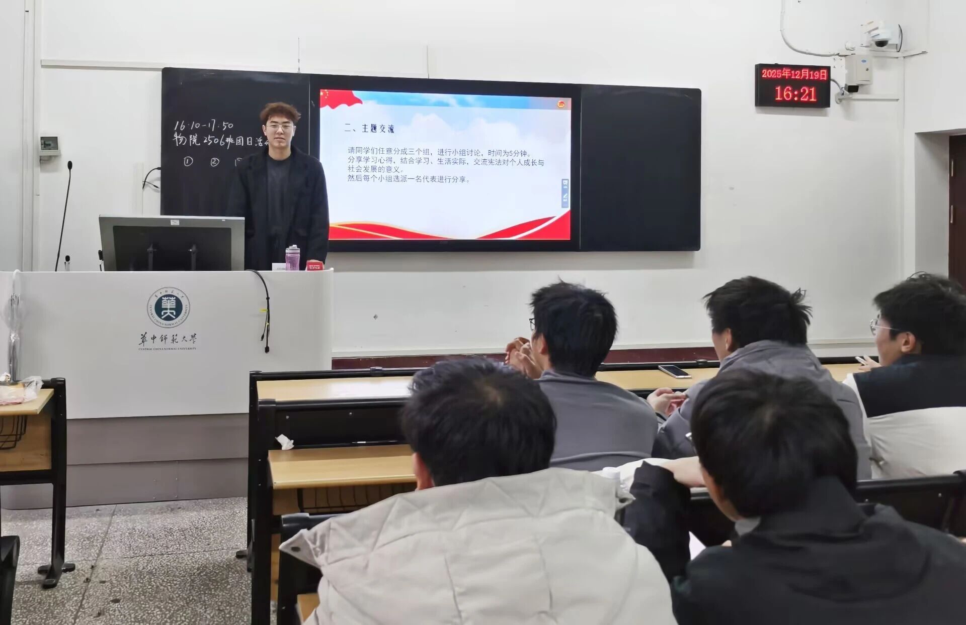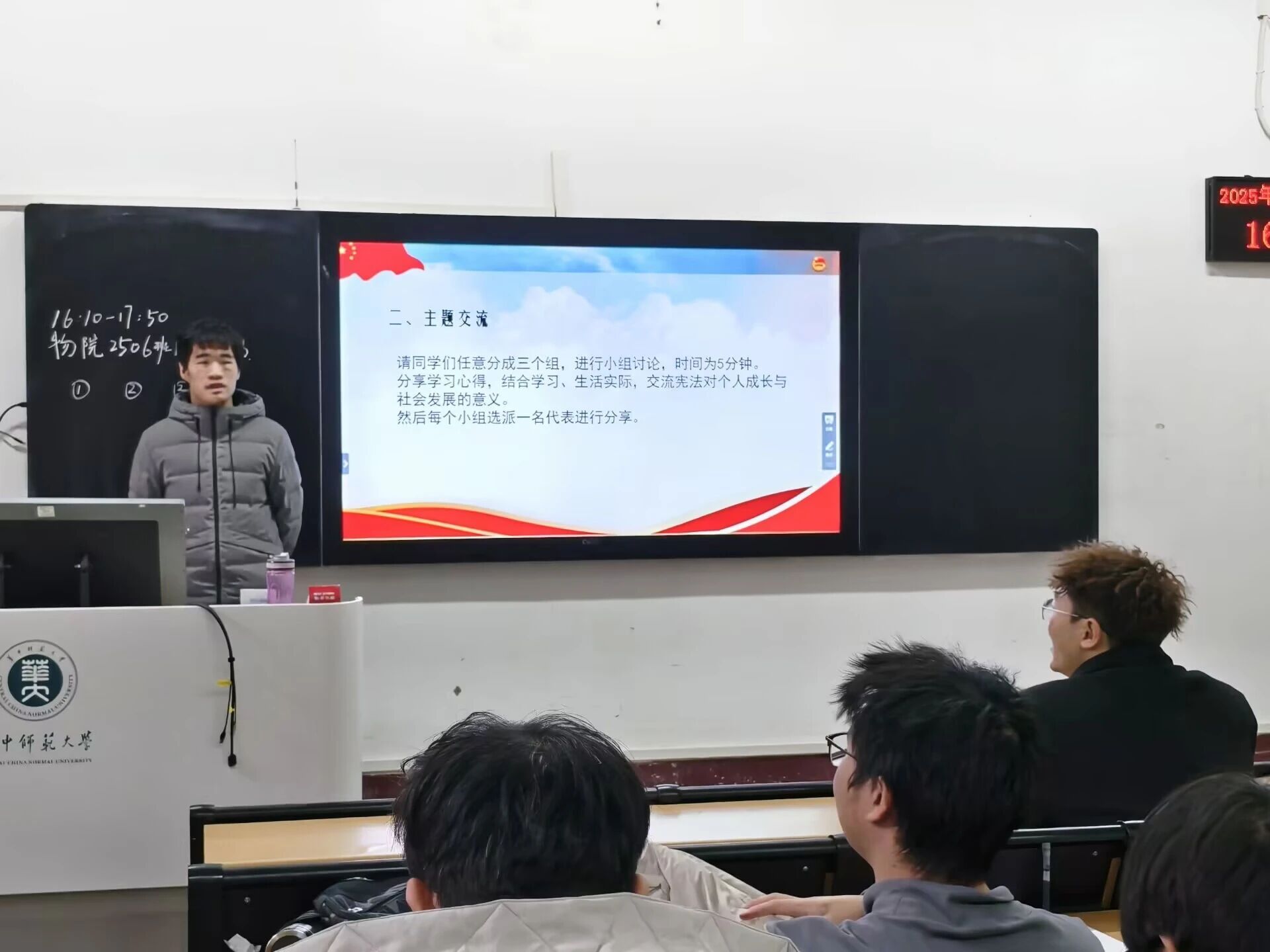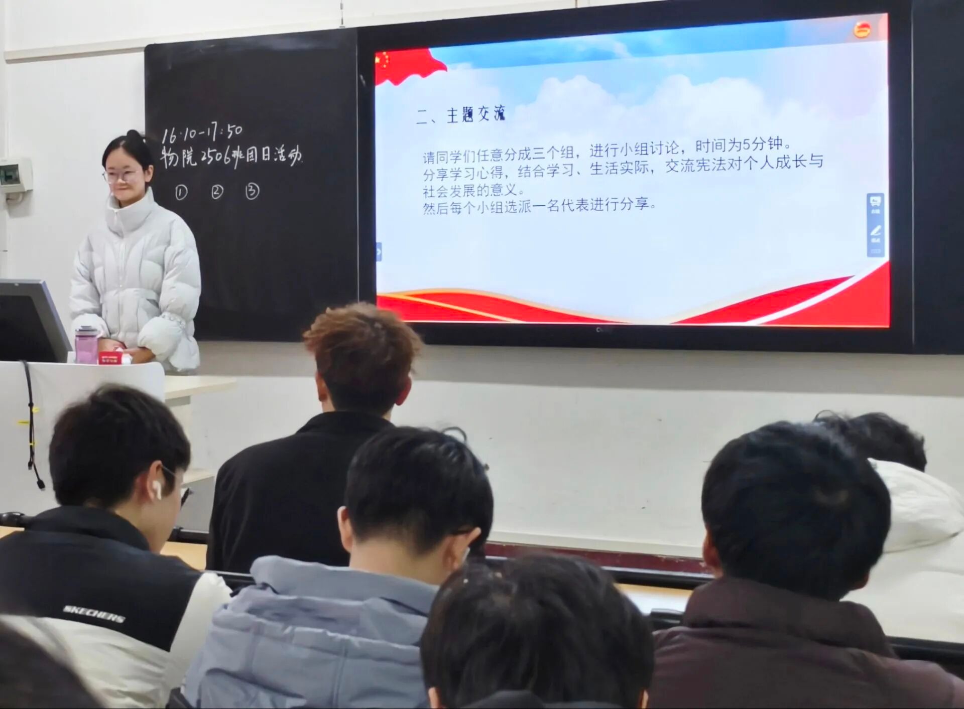 以第十二个国家宪法日为重要契机,为深入学习贯彻习近平法治思想,引导团员青年厚植宪法信仰、弘扬宪法精神,12月19日下午,2506团支部在7105教室举办了本学期第三次主题团日活动。活动由团支书邹琳璇主持,全体团员积极参与,在丰富的议程中深刻感悟宪法的庄严力量与时代价值,以青春行动践行法治担当。