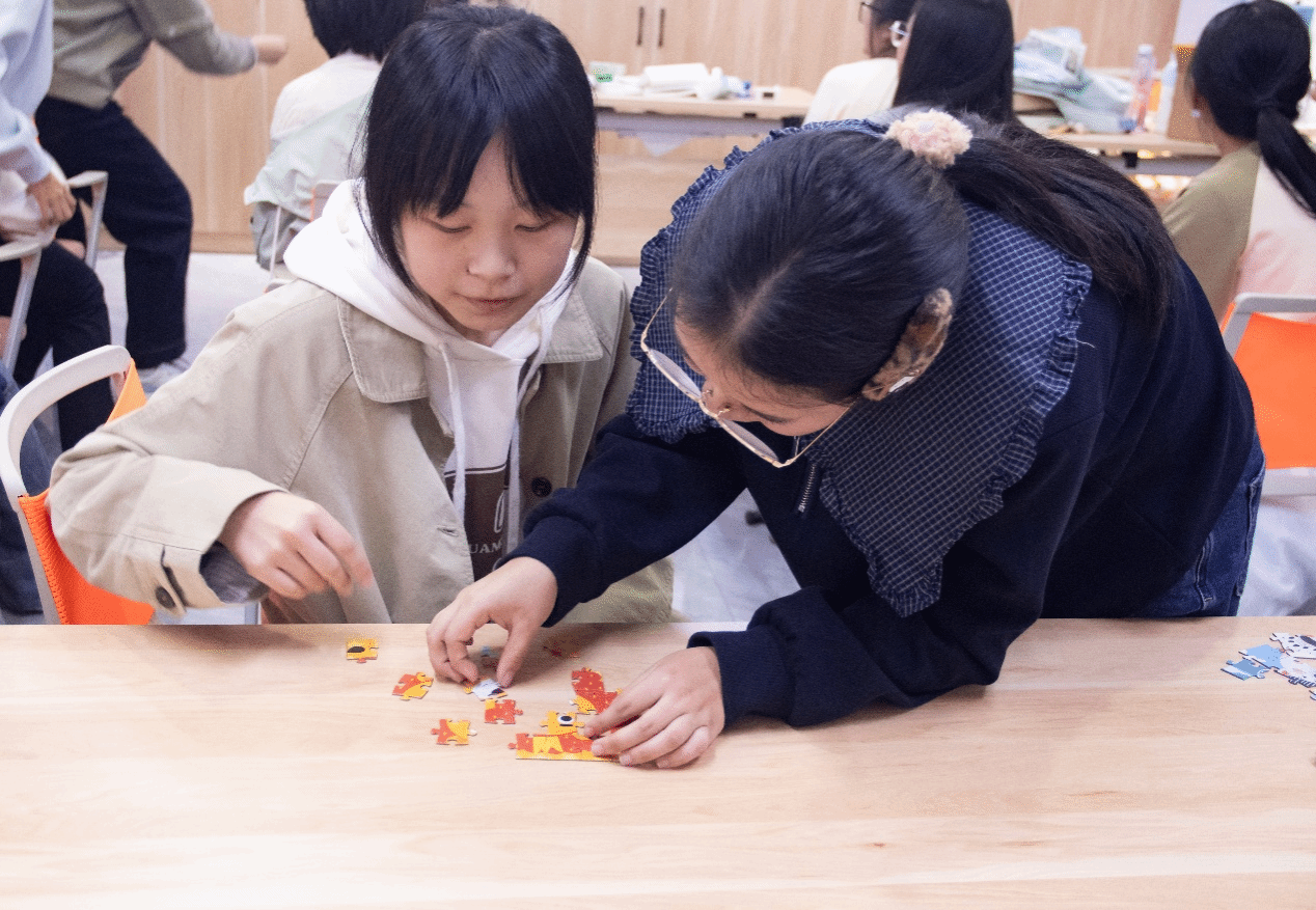 在拼图环节中,各宿舍的四名成员围坐在桌前,各司其职、默契配合。最终,东五409宿舍以最快的速度率先完成拼图,赢得第一名,现场掌声与欢呼声此起彼伏,为这次充满温馨的交流活动画上了完美的句号。