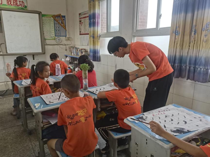 7月26日,华中师范大学辰星支教队(以下简称“辰星支教队”)于湖北省十堰市郧阳区南化金叶希望小学开展了第十一天的工作。辰星支教队队员为学生们带来了“书法之软笔书法”与“手工之装饰柱”等一系列素质课程。队员们在课程中穿插中国传统文化,以文墨润心,以传统铸魂,引导学生立德树人、成才明志。
