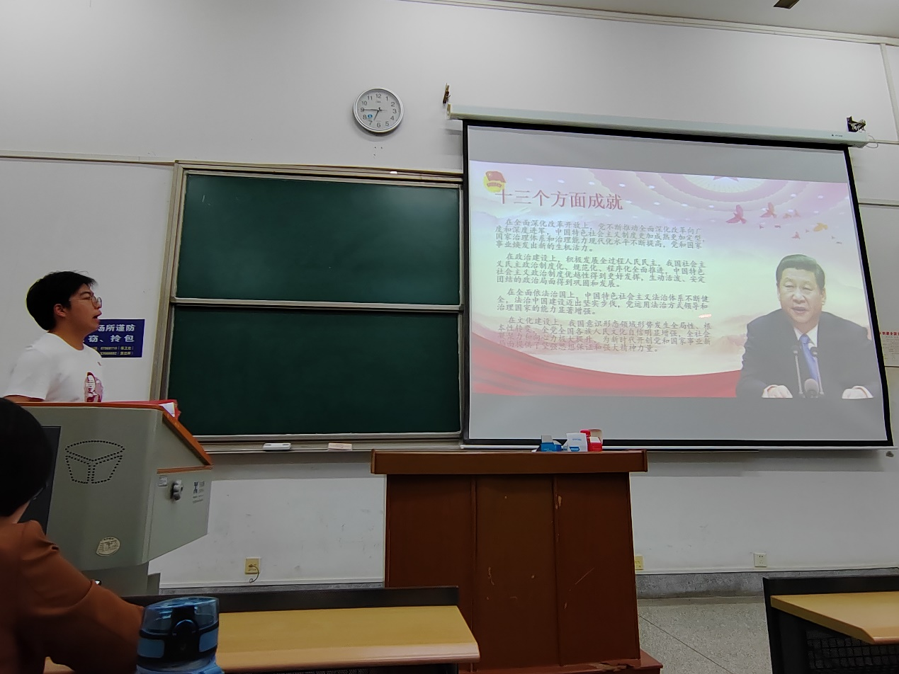 为深入学习党的二十大精神与习近平新时代中国特色社会主义思想,激励同学们勇做新时代的追梦者,争做德智体美劳全面发展的时代新人,2207、2210联合团支部于2023年10月13日晚18:30在9303教室举行以“学习习近平新时代中国特色社会主义思想 做德智体美劳全面发展的时代新人”为主题的团日活动。此次团日活动由2207班团支书于慧馨、2210班张益荣共同主持,2207班班主任杨利建和2207、2210班全体同学参加。