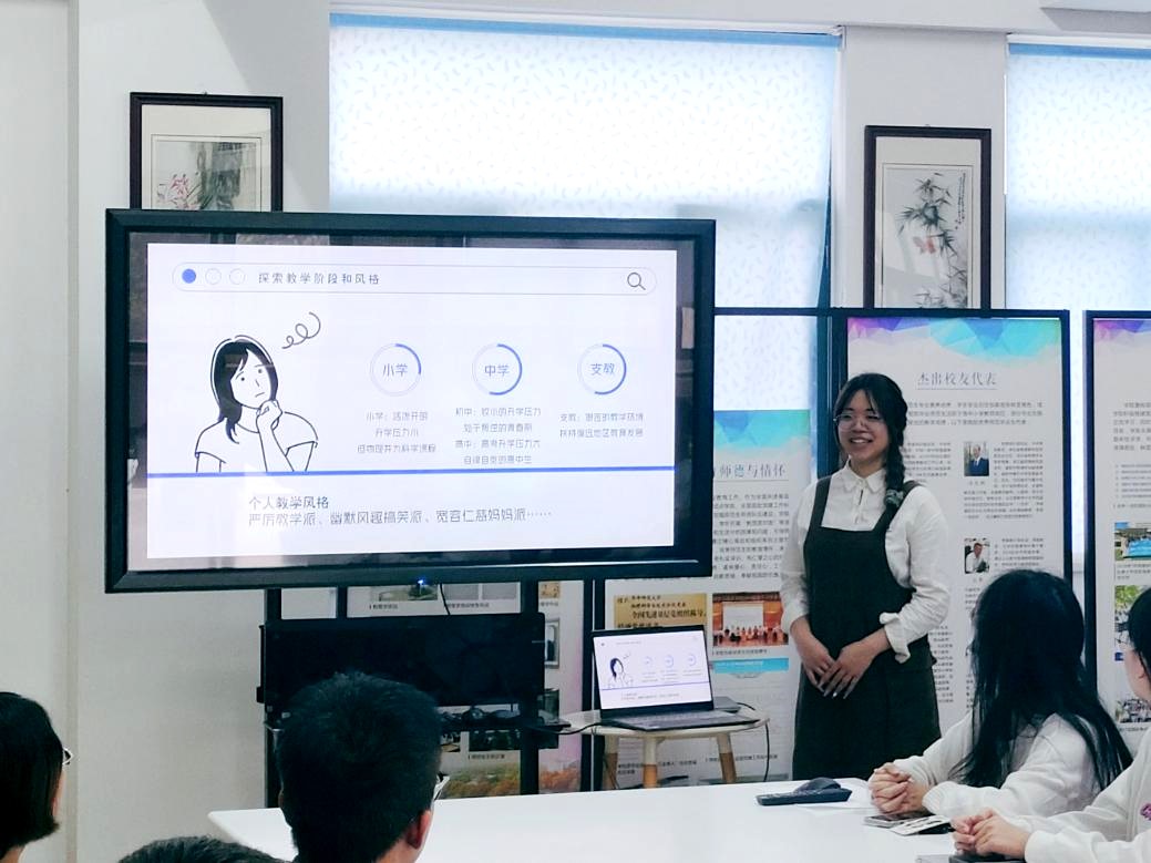 林雯茜邀请同学们围绕自己的教学想法、教学经历,以及在学生生涯遇到的老师的特征进行分享,并由此启发同学们探索个人教学风格,思考自己将来要成为一名什么样的老师,对个人的教师生涯规划进行初步尝试。