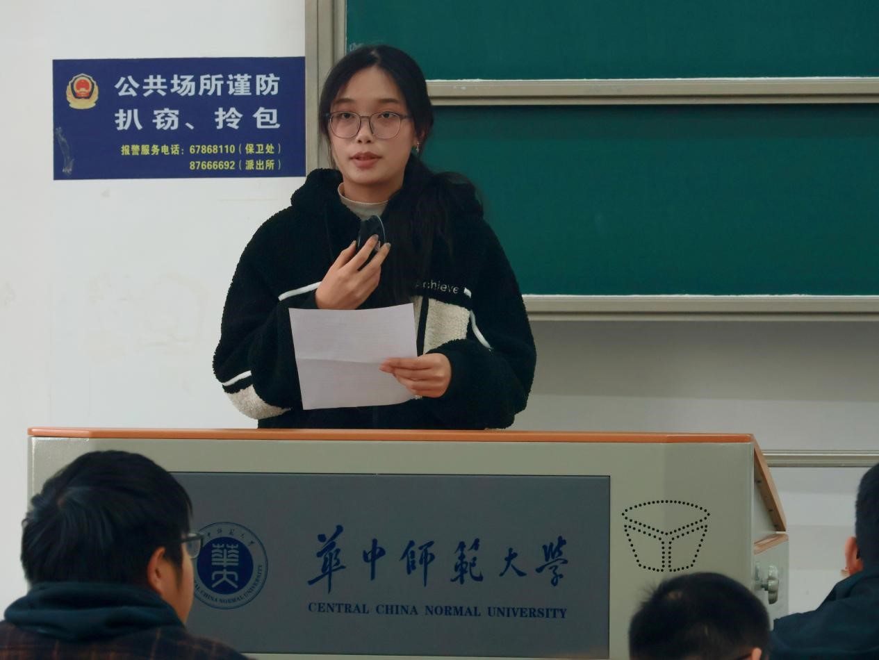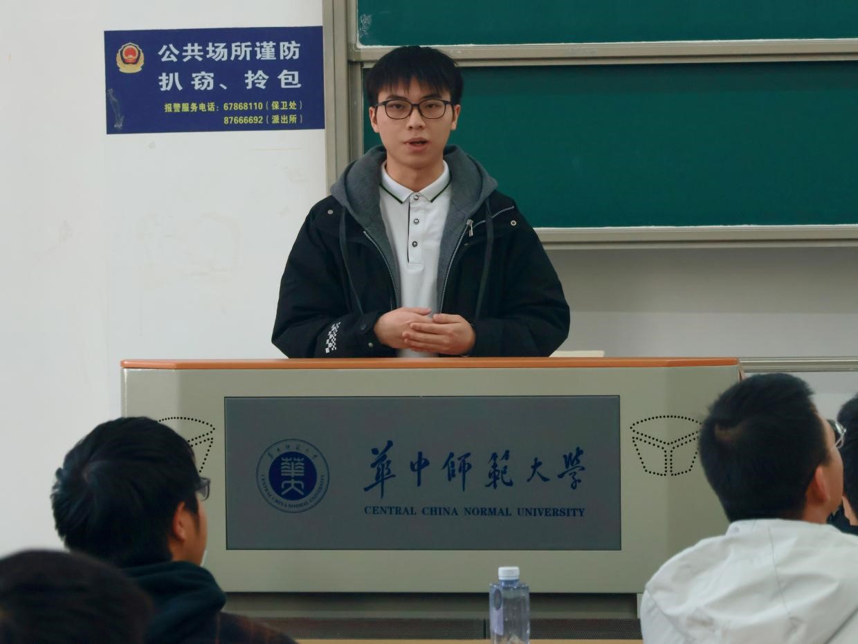 随后,全国百佳心理委员提名奖获得者陈振宇同学进行了心理工作经验分享。他围绕心理工作的重要性及技巧、心理活动的展开形式以及心理委员的角色定位三方面谈了自己的看法,鼓励各位心理委员积极投身于同学们的心理建设,为同学们的心理健康保驾护航。