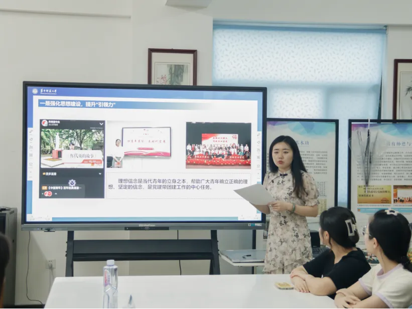 为深入学习贯彻党的二十大精神,落实高校共青团改革要求,进一步增强共青团工作活力,不断赋能青年成长,帮助同学们进一步了解社区实践的内容与要求。5月23日,由华中师范大学团委主办,物理科学与技术学院团委承办的第5期共青团改革创新赋能荟在9551会议室举行。本期交流会由学院团委书记刘瑾芮、研究生兼职辅导员和嫣婷、学生团委副书记张梓璇围绕“‘科普思政’视角下如何开展好新时代实践育人工作”作专题分享。