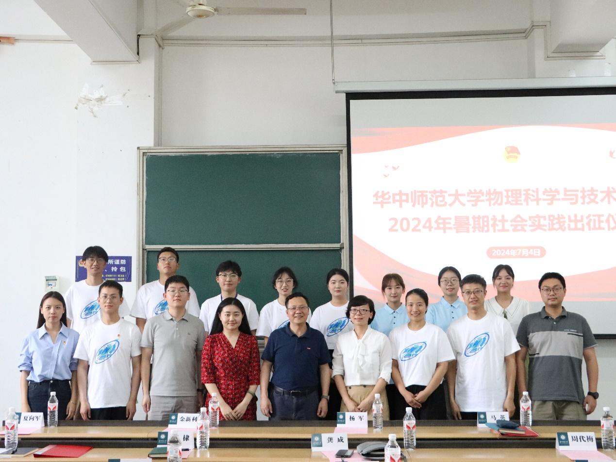 7月4日下午,物理科学与技术学院2024年暑期社会实践出征仪式在九号楼9201教室举行。学校党委学生工作部副部长、事务处处长杨军,学院党委书记金新利,党委副书记马英,副院长吴少平,各实践队带队老师以及队员们参与本次仪式,仪式由学院团委书记刘瑾芮主持。