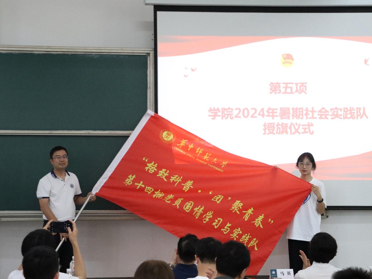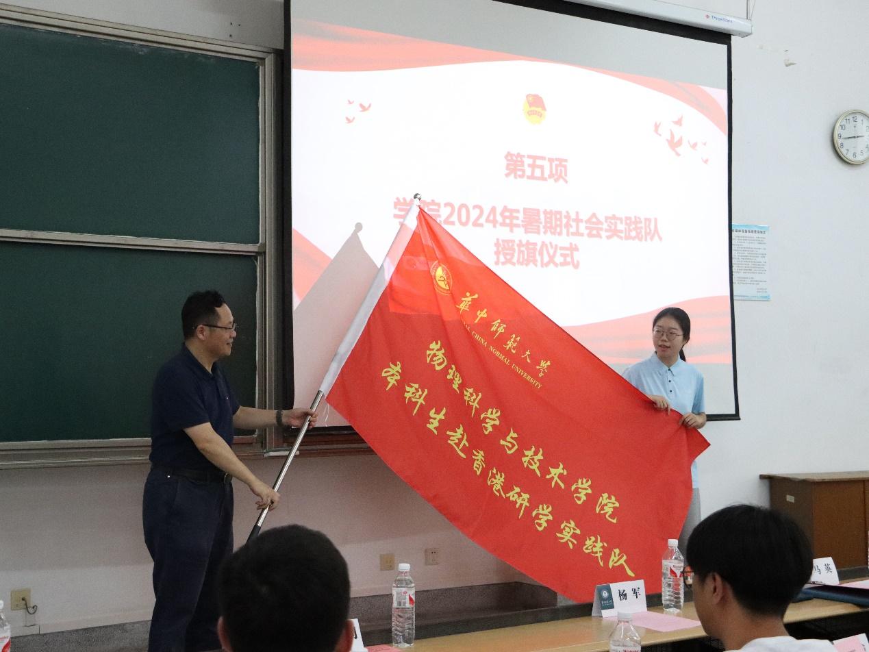 杨军为“香港研学实践队”授旗,金新利为“第十四批党员国情学习与实践队”授旗,吴少平为“优师计划学生暑期实践队”授旗。
