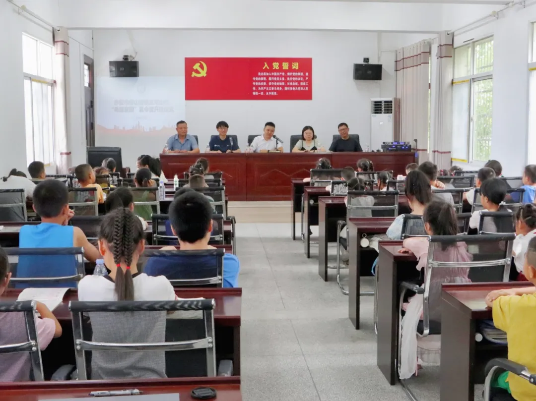 到达目的地后,实践队队员们按照小组分工,进行了周密的实践准备。7月16日上午,宝塔山村“希望家园”夏令营开班仪式在宝塔山村村委会举行,赤壁市柳山湖镇党委副书记李功胜、柳山湖镇纪委书记周瑜、驻村第一书记吴新宇、宝塔山村支部书记陈亮、全体“希望家园”夏令营学生、实践队全体队员和带队老师王棣参加本次仪式。仪式现场气氛热烈,领导嘉宾、参营学生及全体实践队员共同见证了这一重要时刻。