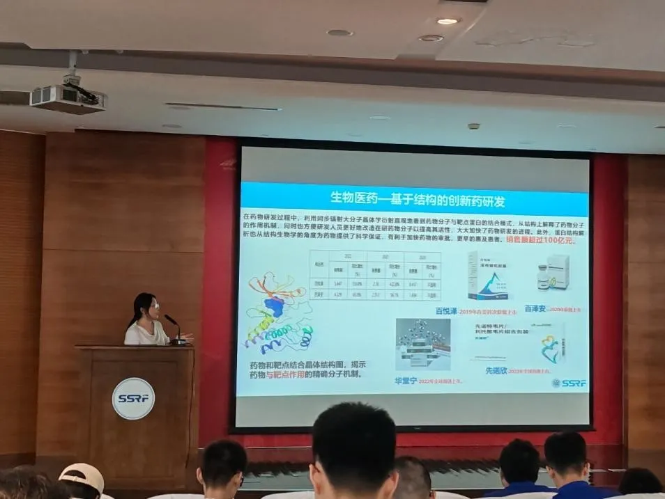 17日下午,实践队前往上海光源进行参观。阎映炳工程师向实践队介绍同步辐射光源以及自由电子激光装置的基本原理。薛艳玲研究员开展《上海光源及其X射线成像新方法》主题学术报告,从上海光源的背景介绍、成像组的学科方向以及培养举例三方面向队员们介绍了上海光源研究所的整体情况。最后,在工作人员的带领下,实践队参观了同步辐射光源的实验设备和不同实验线站。