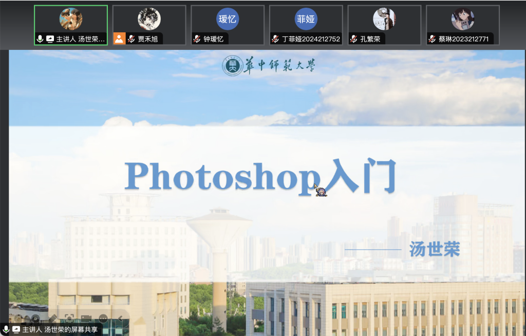团委宣传中心视觉设计部负责人汤世荣为大家带来海报设计与图片处理——Photoshop入门课程。他通过在Adobe Photoshop软件中逐个演示,介绍了文字设计、图层模式变换、抠图和模板创建技巧的使用情境和具体操作,以及其他各种常用工具的特点和使用方法。汤世荣强调,PS技术在我们日常生活和工作中的使用场景很广泛,同学们可以多多尝试。