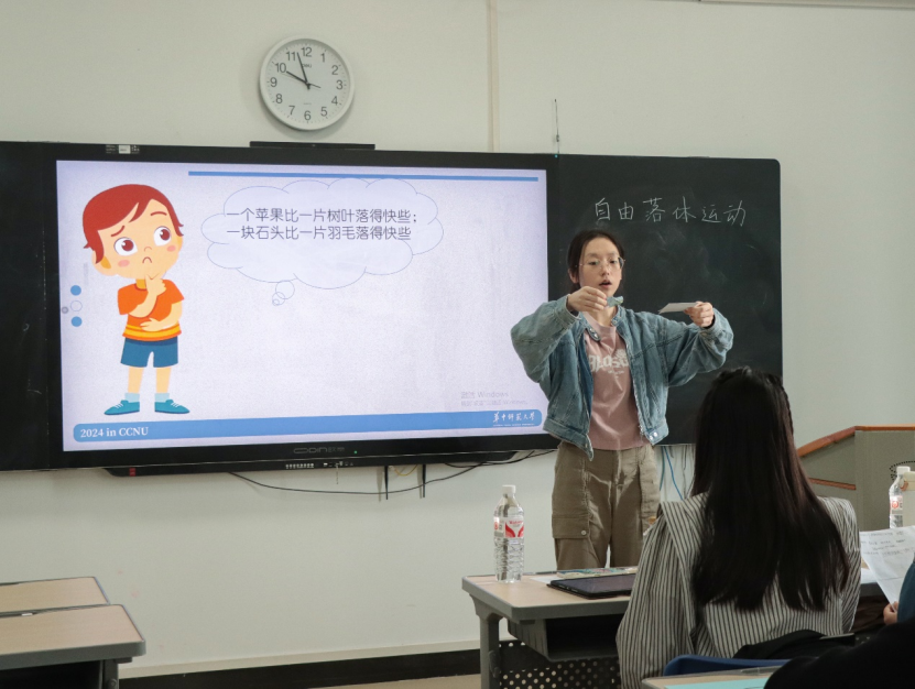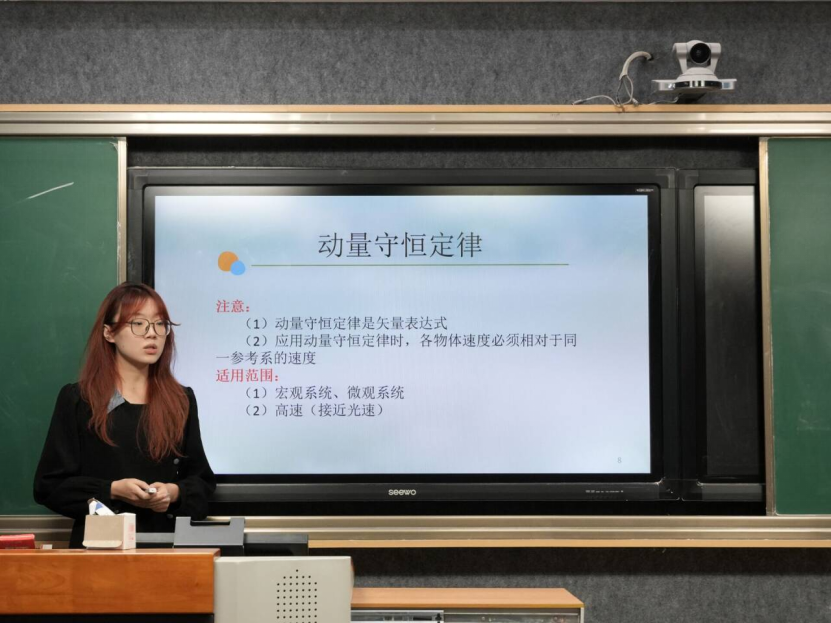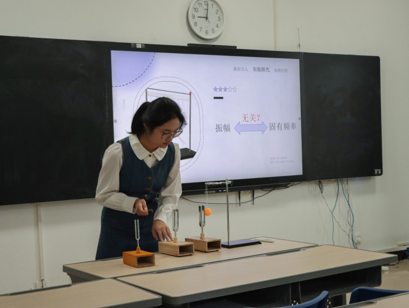 比赛开始,选手们的授课各具特色,根据中学物理教材内容进行教学设计,展现自己在课件制作、板书设计等方面的专业素养与创新能力。评委们根据选手表现,在教姿教态、语言表达、板书排版及内容规范性等方面给予选手们细致入微的指导。