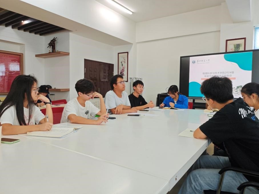 本次会议邀请了物院2205班班长阚丽媛、文学院学生会主席曾湘婷与同学们座谈交流。