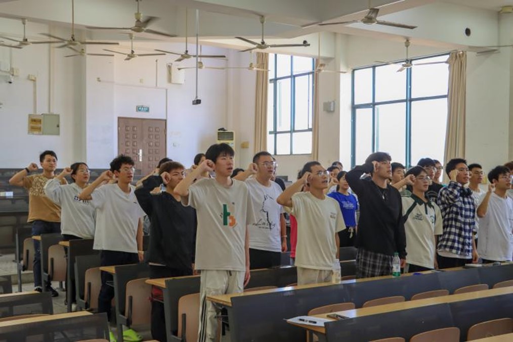 马英为运动员代表授旗。随后全体运动员庄严宣誓,承诺将以饱满的热情积极投入训练,为即将到来的校运会做好充分准备。物理科学与技术学院团学组织将为校运会全程保驾护航。