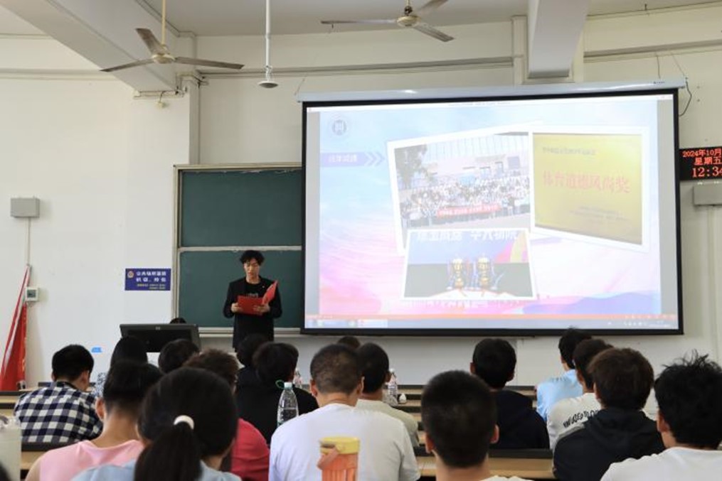 为激发运动员训练热情,弘扬拼搏进取精神,2024年10月18日,物理科学与技术学院(以下简称“物院”)2024年校运会动员大会于9401教室顺利召开。学院党委副书记马英、团委书记刘瑾芮及研究生辅导员苗婕妤参加会议,大会由魏炜同学主持。