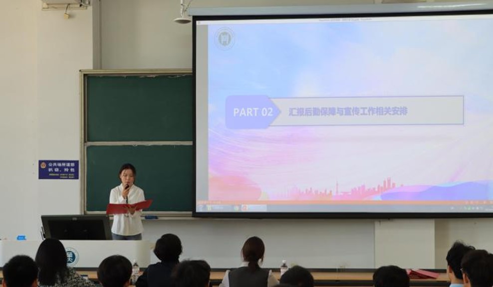 主席团成员魏晨希汇报了校运会后勤保障与宣传工作的相关安排。本次运动会将继续实施大本营制度,构建宣传组、保障组、调度组三位一体保障体系。同时,将安排一对一志愿者对接个人项目运动员,以提高志愿服务的针对性和实效性。