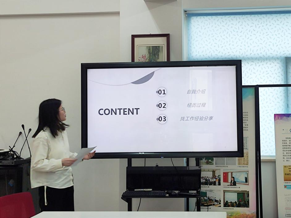 陈致江、方灿泽、郑晓雪三位同学分享了自己从考研到找工作心态上的转变,以及成功就业的经验,如要有就业的信心,要重视每一次的笔试面试等。