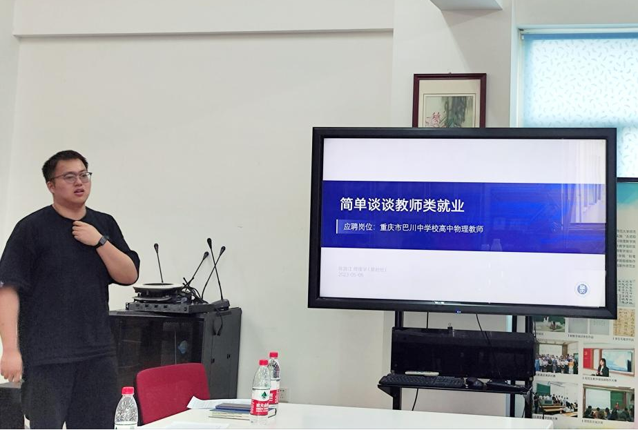 会议分为师生座谈会和求职经验分享会两个环节。辅导员高玉茜、王惠娟分别就师范生、非师范生的就业升学落实情况、学分情况等问题进行说明。参会学生介绍自身的就业升学意向、在此过程中面临的问题等。老师们对同学们的问题一一进行了解释回应以及总结。