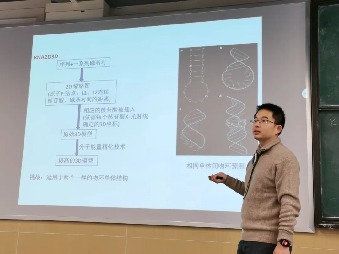 软物质物理是物理学的主要分支之一,而生物分子结构预测是其中最受关注且最具挑战的研究方向。自博士阶段起,赵蕴杰便瞄准了这一领域,潜心耕耘,致力于探索与突破。从博士期间的研究“利用模块识别、片段结构自动化组装和全原子统计势预测核酸三级结构”到“引入序列共同进化分析模型,提高核酸分子的建模精度”,再到“发展基于深度学习复杂网络的复合物结构预测与分析方法”,他的科研之路充满了创新与挑战。课题组发展的原创性模型已被来自全球85个国家和地区的研究者使用,累计使用超过6万次。DRPScore是首个基于深度学习的RNA-蛋白质评分函数,为复合物结构预测提供了全新的突破,发表于顶尖期刊Nature Communications,被中国生物物理学院作为科技前沿进行了报道。RNet是一种基于机器学习的可解释复杂网络模型,能够精确获取结合位点和结合动态行为信息,发表于期刊Briefings in Bioinformatics,被选为亮点论文推荐。这些新方法和新理论,凝聚了课题组师生的智慧,也为软物质物理学科的发展增添了重要的力量。十余年的科研经历让赵蕴杰体会到要想在学术路上行得稳、走得远,必须敢想、敢做、敢坚持。“科学研究没有捷径,有想法就要去做,哪怕是‘高难度’的课题。大胆猜想,反复实验。实验,失败,再实验,再失败……看似枯燥的循环,实则是在摸索中不断积累。千里之行始于足下,关键在于坚持。”