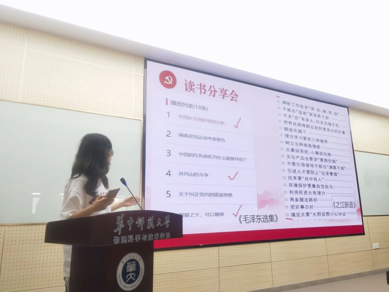 自步入大学以来,她始终保持着认真求实的态度。作为一名党员,她认真参加每次的理论学习,积极参加支部活动。作为物理学院师范专业本科生第二党支部的宣传委员,她担负起支部日常宣传的责任,悉心保存每一次活动的纸质记录和电子记录,与支委们共同策划并组织了十余次党日活动、实践调研等。作为一名支委,不仅仅是要传达信息,更是要通过自己的努力和行动,将党的声音传递给每一位同学。