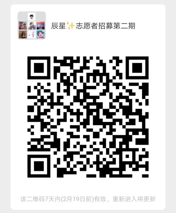 现在,我们将开启第二期志愿者招募!如果你也想体验在线直播授课,欢迎加入辰星成为志愿者(进群了解更多哦)!【如果是在微信公众号推,请用微信群:】(如果群二维码需要更新,烦请联系QQ:2236888108,麻烦啦)