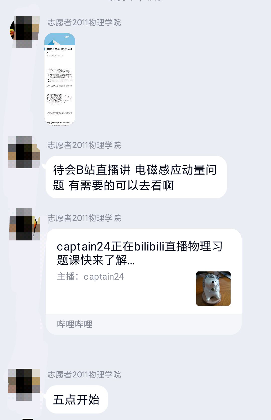 学生进群后可以选择直接在QQ群中提问,也可以单独私戳志愿者解决问题。在群中,志愿者们不仅为同学们答疑,还会分享物理线上资源、直播讲解相关课程,更好地帮助同学们在家自主学习。