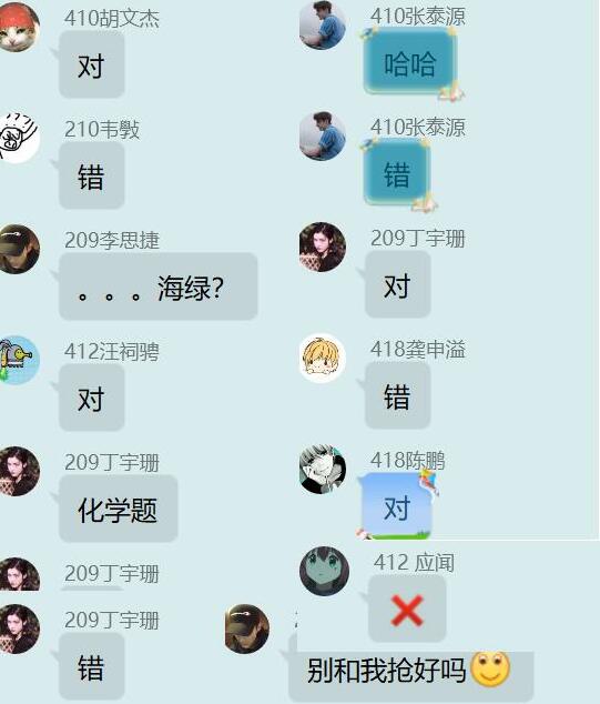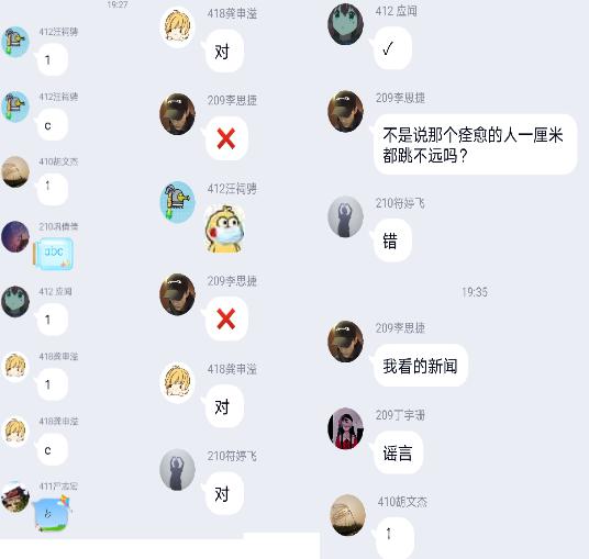为指导同学们学习掌握防疫知识,提高自我保护能力,1910团支部进行了疫情防控知识抢答活动,同学们踊跃参与,线上团日活动的气氛十分热烈。大家积极在群内回答问题、提出疑问、互相解答,既增加了居家防疫知识,也增进了团员之间的情谊,增强了班级的凝聚力。