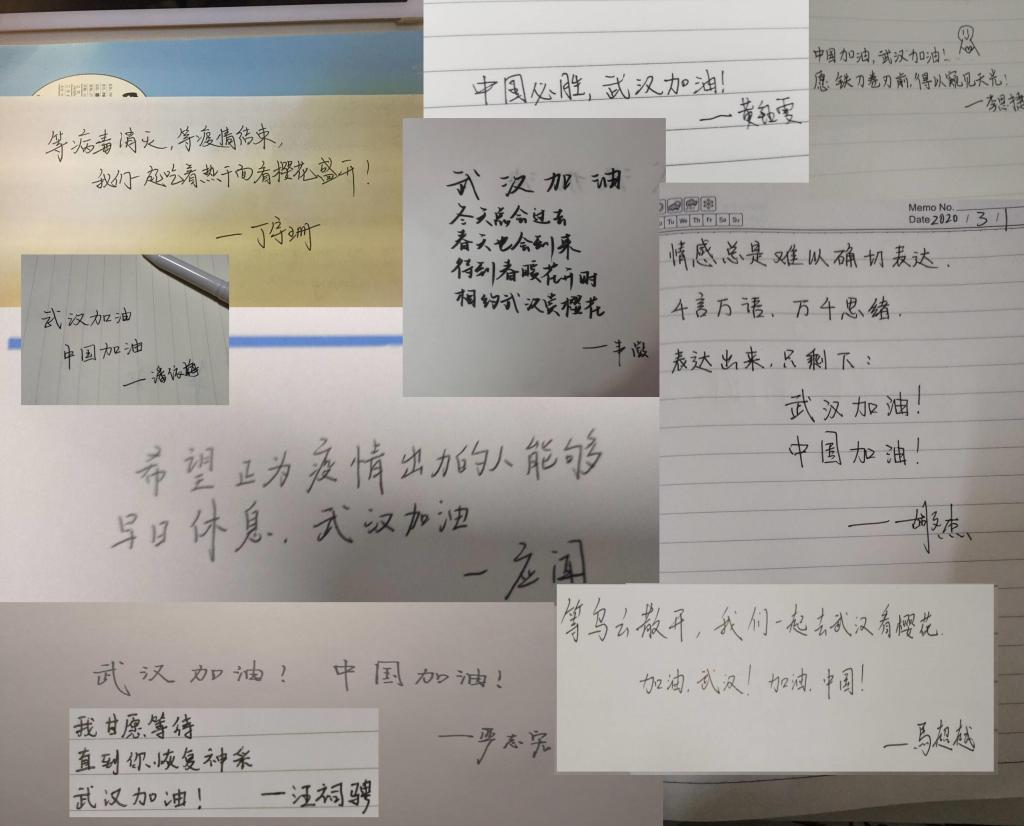 隔绝疫情,不隔绝友情,隔绝病毒,不隔绝爱。1910支部成员们在纸条上写下对武汉的祝福,为奋战一线和新冠肺炎患者加油,期盼疫情早日结束,逆行者们可以早日回家。