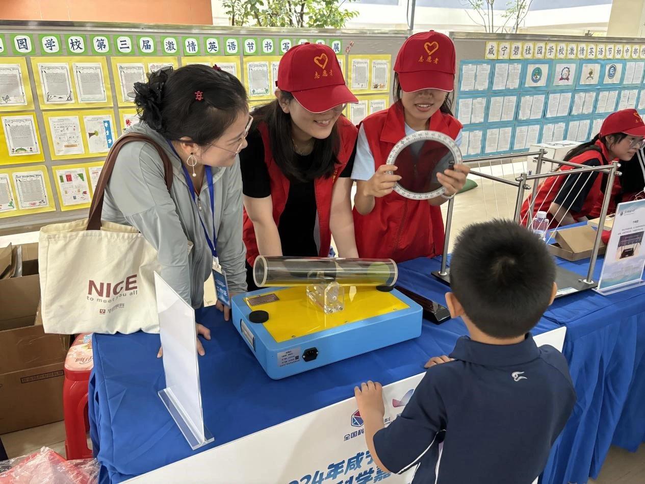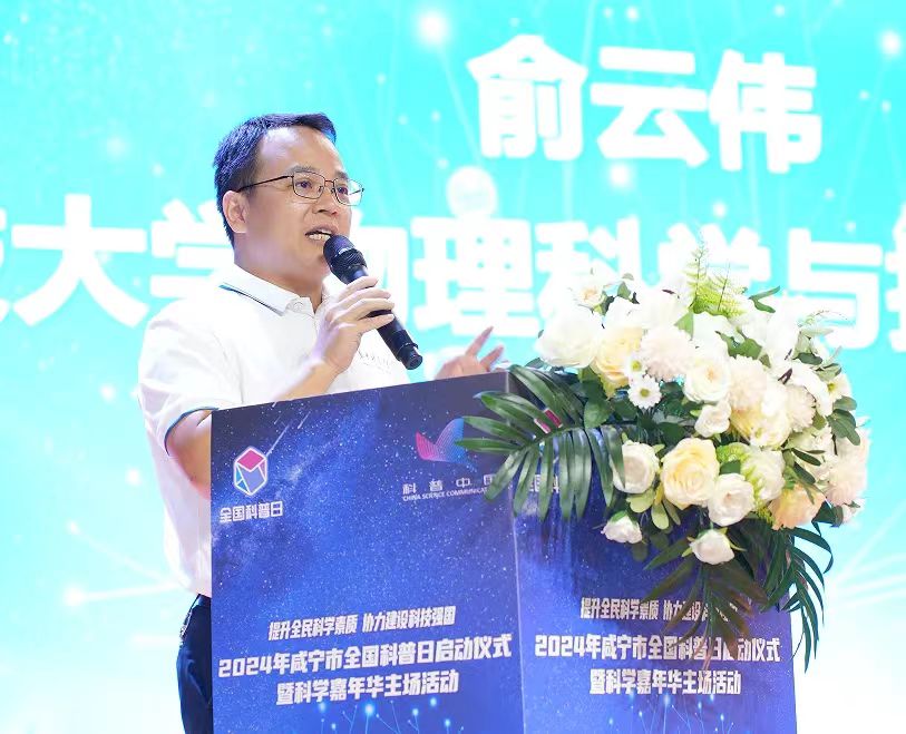9月19日,“提升全民科学素质,协力建设科技强国”2024年咸宁市全国科普日启动仪式暨科学嘉年华主场活动在咸宁碧桂园学校举办。本次活动由咸宁市科学技术协会、咸宁市教育局、咸宁市科学技术局、共青团咸宁市委、咸宁市妇女联合会主办,咸宁碧桂园学校承办。学院副院长俞云伟教授,义务教育科学课程标准修订组组长刘守印教授、学院谢晓梅老师出席活动,学院近十余名本科生、研究生参加本次科普活动。启动仪式上,俞云伟副院长为活动致辞。